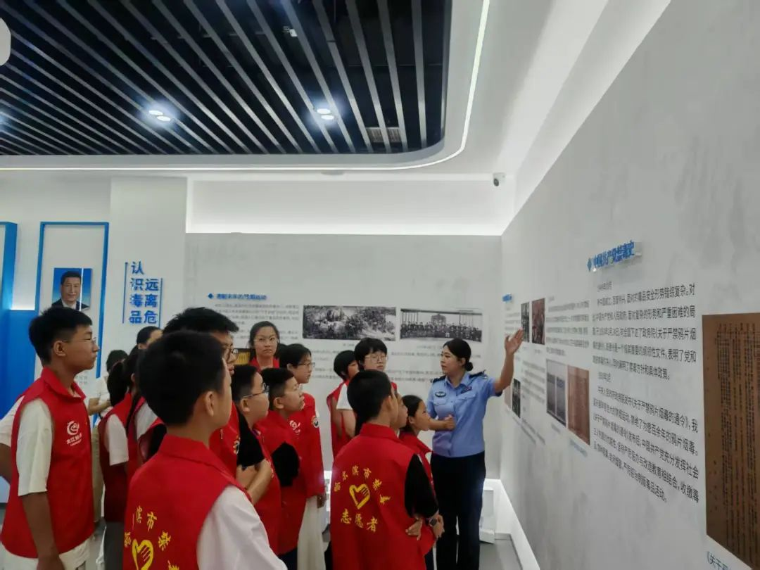 完成系统培训后,志愿者们怀揣使命感与责任感走进禁毒教育基地参观学习,借助多媒体展示、虚拟现实体验等沉浸式手段,全方位、深层次地了解毒品从生产到流通的各个环节,及其对个人、家庭和社会的危害,进一步深化了对毒品的认知。基地讲解员还带领大家开展模拟实战演练,分组完成“劝阻青少年涉毒”、“社区禁毒宣传”等情景任务,并进行指导点评,进一步提升志愿者的实战能力。最后,“我志愿成为一名禁毒志愿者,坚决与毒品作斗争”,青少年们铿锵有力的宣誓声在禁毒教育基地内久久回荡,彰显了他们禁毒的坚定决心。