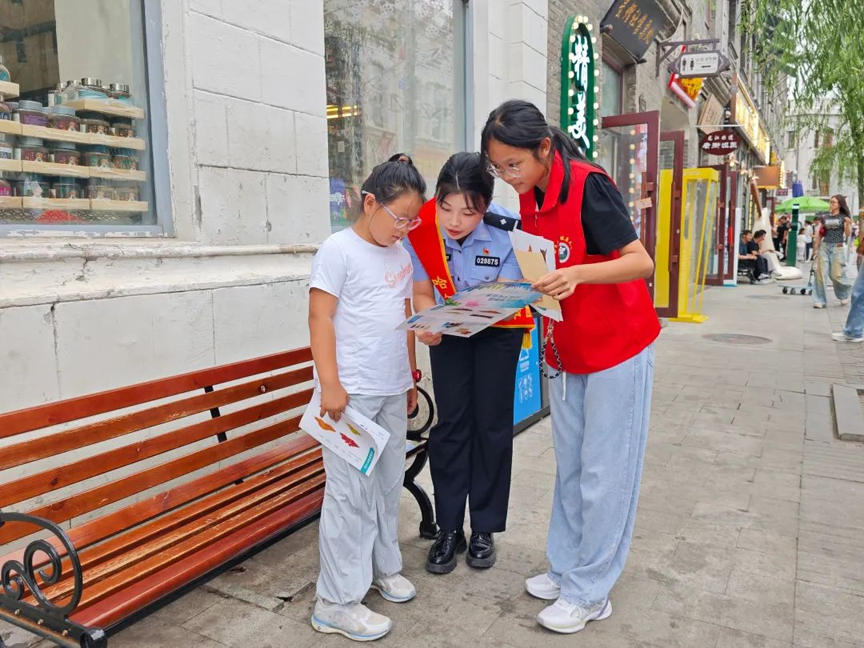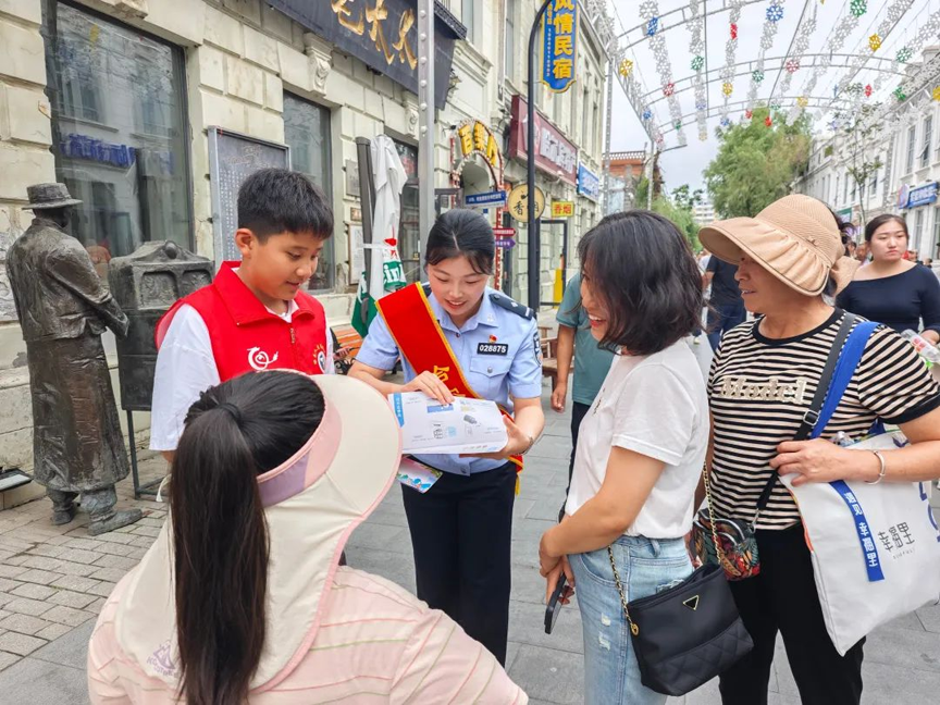 随后,志愿者们迅速奔赴实践一线,在哈尔滨市中央大街、太阳岛、中华巴洛克等热门景点、地铁站点,全面开启“固定 + 流动”禁毒宣传模式。在固定宣传点位,志愿者们精心布置宣传展台,向过往市民游客发放禁毒宣传手册,细致讲解毒品危害与防范知识,利用仿真毒品模型直观展示毒品外观特征。在流动宣传环节,志愿者们随车宣传,穿梭于人群,开展互动问答与趣味游戏,将“健康人生、绿色无毒”的理念融入交流中,切实有效传递禁毒知识。