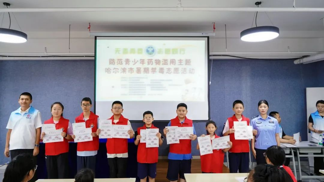近日,黑龙江省哈尔滨市禁毒办联合市教育局、市人社局、团市委、市司法局及黑龙江省志愿服务基金会禁毒宣传志愿服务项目办、“龙江好人帮”项目办,在哈尔滨先锋技工学校开展以“无毒青春·志愿同行”防范青少年药物滥用为主题的暑期禁毒志愿活动。