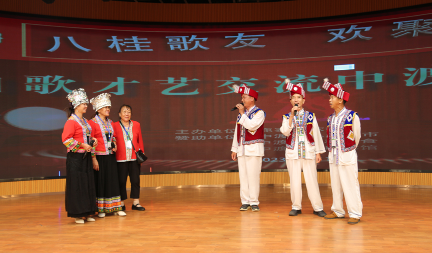 8月12日,由鹿寨山歌学会主办的“八桂歌友欢聚鹿寨”山歌才艺交流联谊会在鹿寨红色文化陈列馆举行。鹿寨众多歌友与来自柳州、河池、来宾等五市十四县(区)的歌友们欢聚一堂,以歌会友、以歌传情,进一步促进民族团结和民族文化交流,铸牢中华民族共同体意识,更好地传承和弘扬山歌非遗文化。