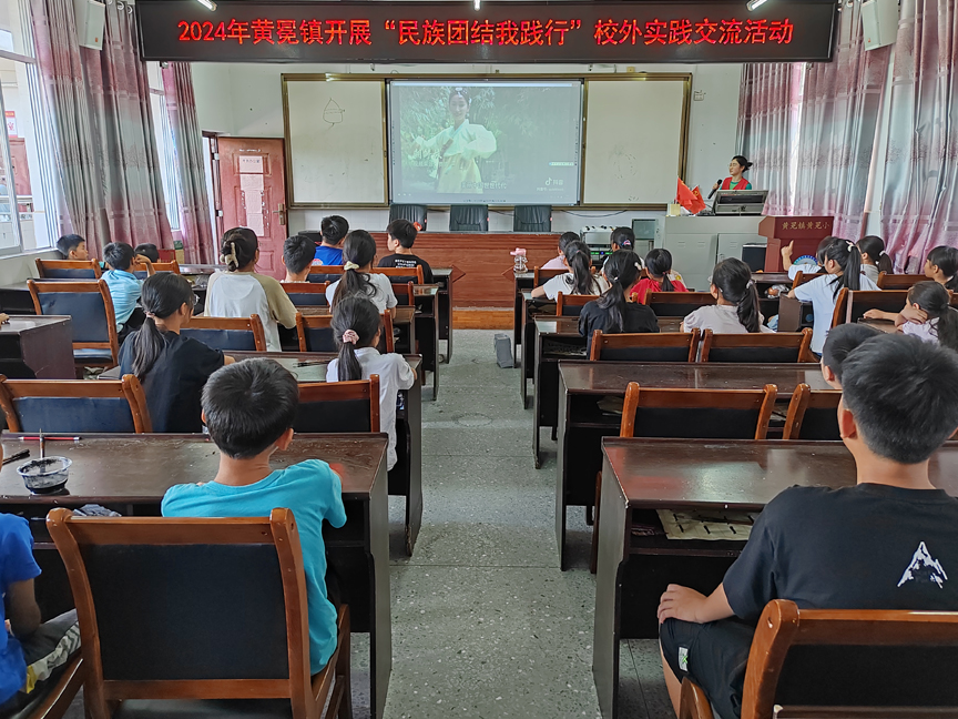 一段精彩的民族变装视频,将课堂氛围推向了高潮。伴随着动感的旋律,视觉冲击力十足的民族服饰变装视频,深深地吸引了学生们的目光,学生们不时发出阵阵惊叹声,在震撼中对我国各民族服饰有了初步的认识。在和谐而有趣的课堂互动中,学生们还观看了铸牢中华民族共同体意识的宣传动画片,同时聆听了志愿者深入浅出的讲解,了解了促进民族团结的意义。
