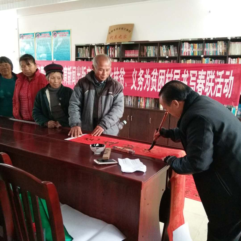 “心想事成好年好景好前程,平安如意顺风顺水顺人意”……一幅幅喜庆且墨宝飘香的春联在书法家的笔下跃然纸上,1月15日,鹿寨县文体新广局组织文化馆书法老师及文化志愿者深入四排镇贫困村江南村免费为贫困户群众书写春联,并普及和宣传楹联基本知识,150幅寓意吉祥和美好祝福的大红春联被满心欢喜的群众领回家,深受当地村民的青睐和一致好评。(通讯员韦武华、罗小红)