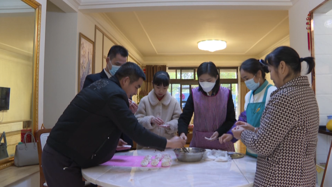 看到黄阿姨家这温馨的一幕,家在外省留鹿过年的物业人员赵英也深受感动。她感慨地说:“今年由于疫情原因,我依然坚守岗位,在这边跟业主一起包饺子、贴对联,很开心。爸爸妈妈,祝你们新年快乐!我在鹿寨一切都好!”