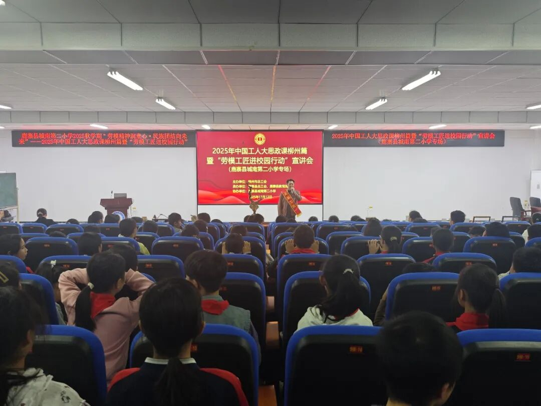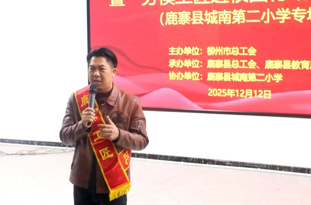12月11日至12日,由柳州市总工会主办、鹿寨县总工会和县教育局承办的“劳模工匠进校园行动”宣讲会,分别在鹿寨小学和鹿寨县城南第二小学举行,两场活动共吸引500余名师生参与,蛋雕与木雕两位非遗传承人以匠心故事传播榜样力量。