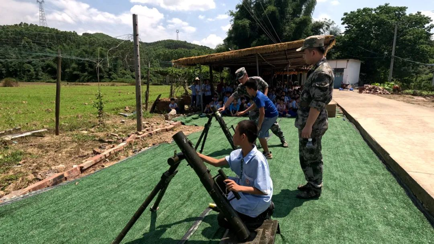 此外,研学课程中还设有迫击炮体验、真人枪战竞技等户外拓展训练。同学们在教官的指导下,学习迫击炮的发射技巧。伴随着一声巨响,炮弹直冲云霄,激起同学们阵阵欢呼。随后,同学们穿上小马甲,端起激光枪,分组赶赴战场,沉浸式体验在极具真实感的战场环境中冲锋陷阵的感受。这次研学活动让同学们收获满满。