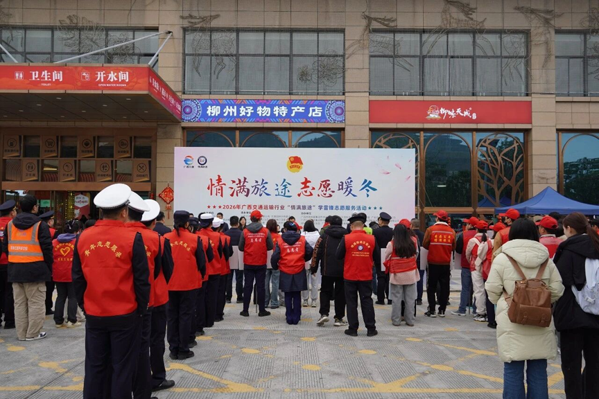 2月2日,2026年广西交通运输行业“情满旅途”学雷锋志愿服务活动在广西交投集团鹿寨服务区正式启动。志愿者们以暖心的行动、看得见的身影,共同护航“平安春运、便捷春运、温馨春运”,为旅客铺就温暖回家路。