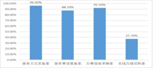 办事服务的在线办理成熟度指标平均得分率仅为37.70%,特色网上政务服务较少,跨部门、跨事项网上“一事通办”集成套餐服务缺失,存在明显不足。在事项办理深度方面,能够实现智能审批、一次不用跑的服务事项较少,如自治区交通运输厅有80项服务事项,仅有1项服务事项能够实现一次不用跑,占比1.3%;如苍梧县有811项服务事项,只有35项服务事项实现一次不用跑,占比4.3%;虽然提供了智能审批、一次不用跑等全网办理服务事项,但这些事项都是单一的服务,还未提供跨部门、跨事项的网上集成套餐服务。绝大多数网站咨询投诉平台与全区一体化网上政务服务平台的咨询投诉功能未实现统一。