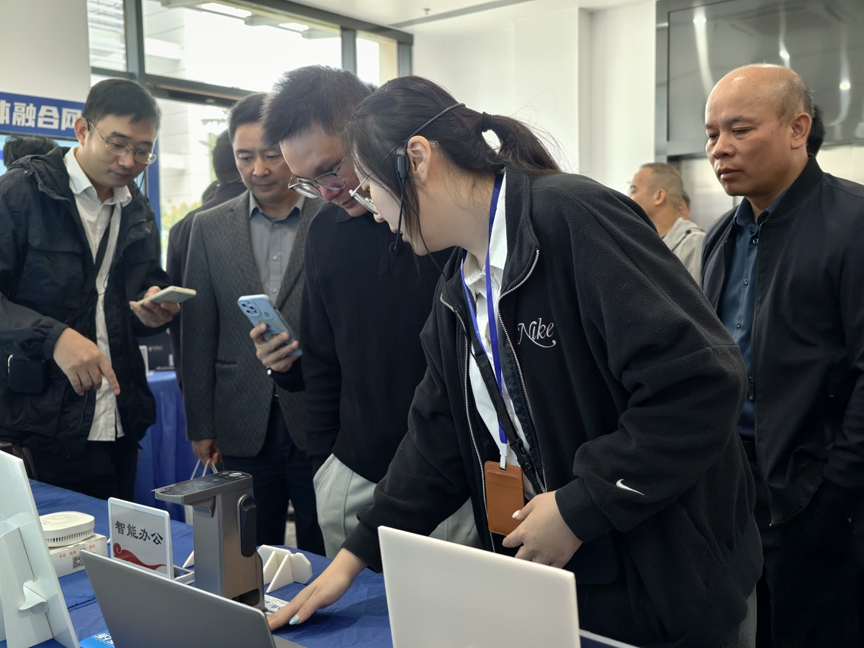 在体验与互动交流环节,企业家们亲身参与灵犀数智工业平台、本地DeepSeek部署、智能安防数字办公等场景体验,感受数字化工具在提升生产效率、保障运营安全、优化管理流程等方面的实际效用。