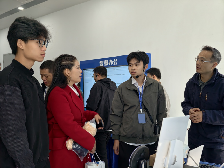 在柳州市柳东新区柳东云数据中心,我县民营企业家们参观了监控中心、空调机房、动力室及IDC机房,了解数据中心稳定运行的核心基础设施与技术架构。电信工作人员以业界首款智算一体机——高阶网关为核心,现场演示了其视频收编、打卡、云盘及AI交互等实用功能,介绍了工业园区平台的核心架构与适用领域,重点围绕“AI+”赋能实体经济的六大应用场景展开讲解。同时,工作人员还详细解读企业关切的“信息化建设补贴申报”流程、“企业职工实惠购”等政策,为企业降低数字化转型成本提供清晰指引。