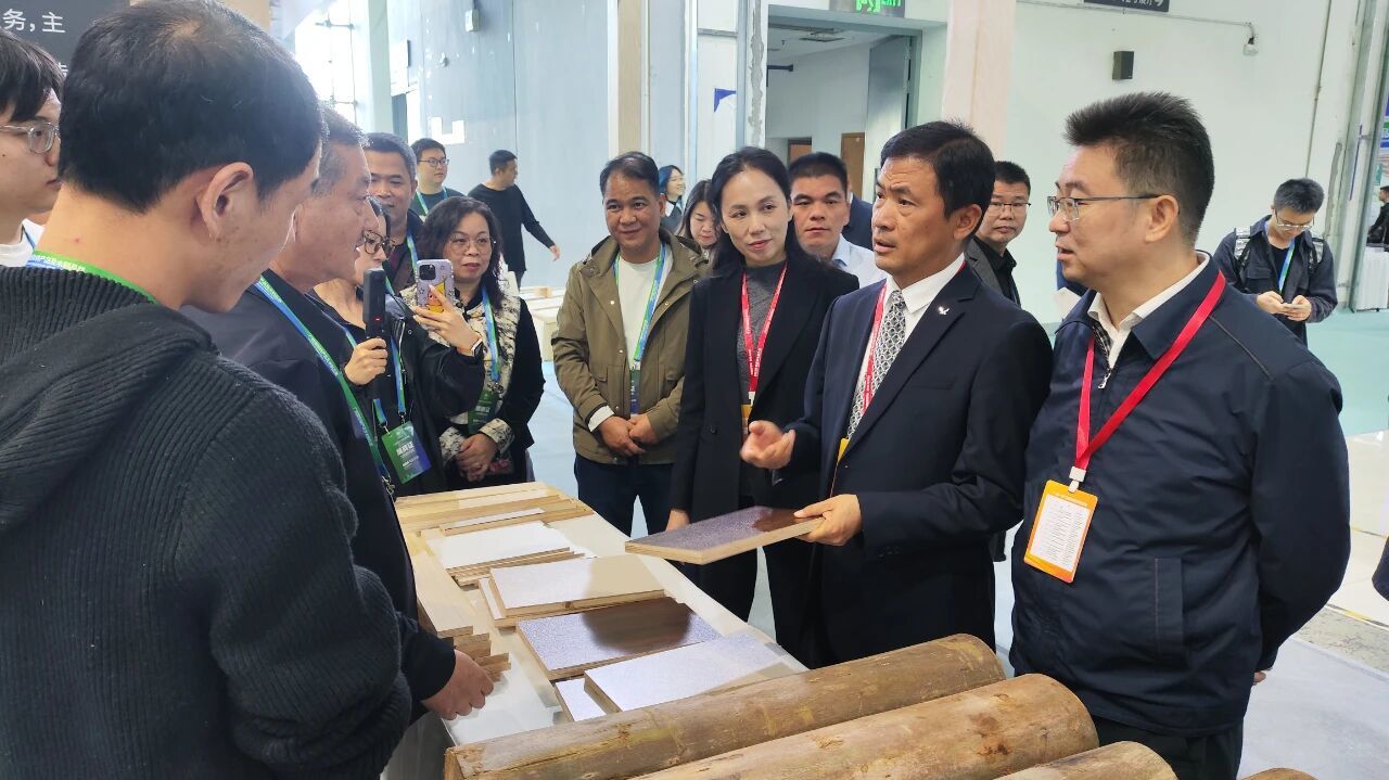 同期举办的广西国际林产品及木制品展于11月22-24日在南宁国际会展中心开展,该展以“数智赋能”为主题,深度聚焦林业数字化转型与智能化升级趋势,全面展示林木业前沿技术与创新成果。我县组织广西一家美人造板有限公司、广西畔森装饰材料有限公司、广西双中试科技有限公司、广西麓湘汇木业有限公司、柳州市桥牌木业有限公司等9家知名企业代表参展。