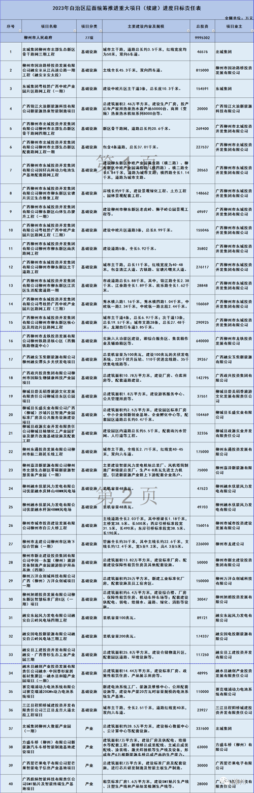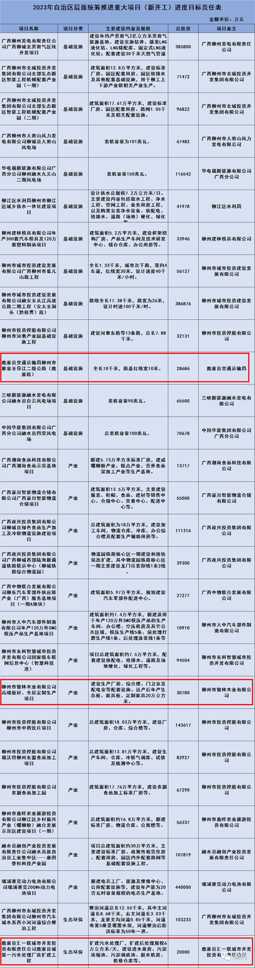 近日,广西政府办公厅发布《2023年自治区层面统筹推进重大项目实施方案》(下简称《方案》)提出,广西2023年重大项目包括新开工、续建、竣工投产和预备四类,共2528项,总投资46486.42亿元。其中,鹿寨涉及项目有13个,总投资31.06亿元。
