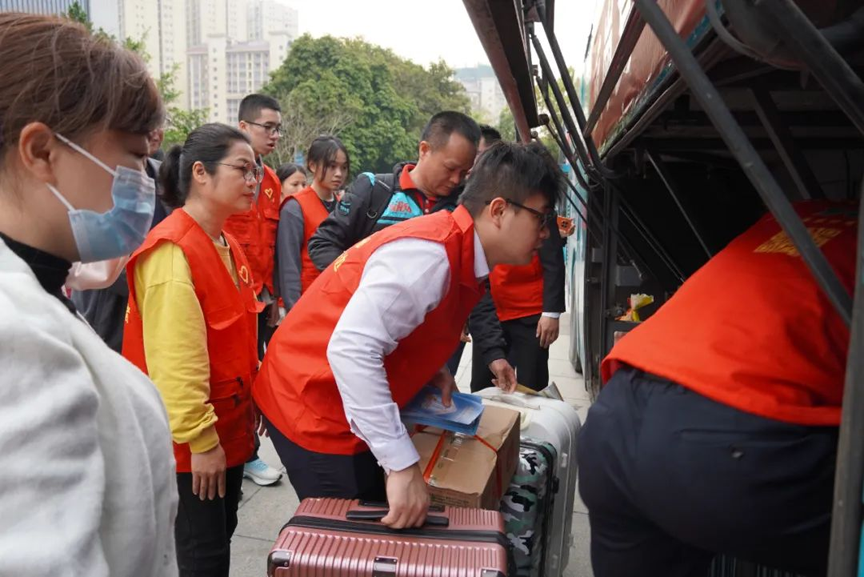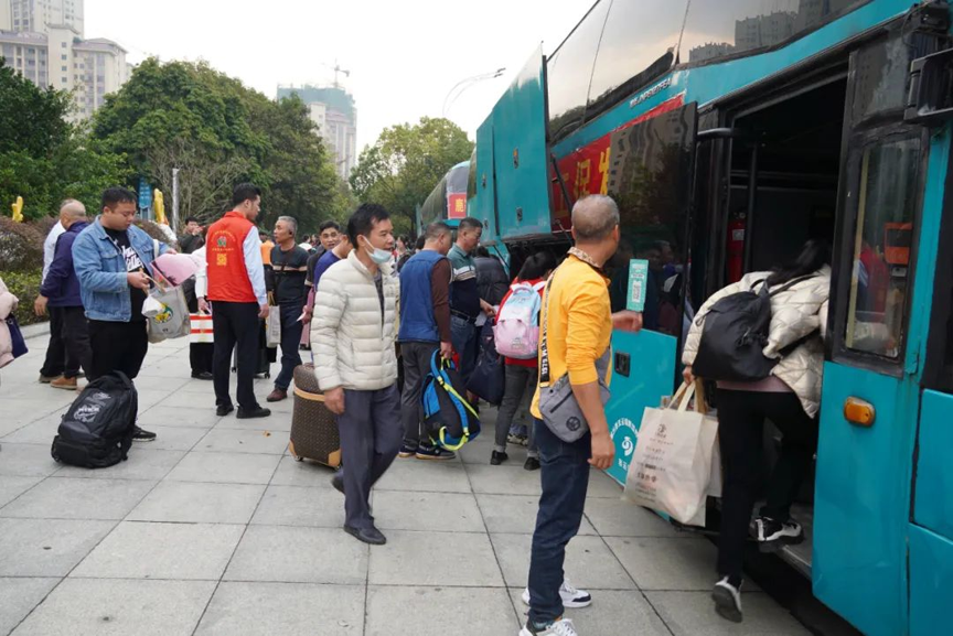 随后,在工作人员的精心组织下,大家依次排队登车,他们将统一乘坐专门安排的两辆赴粤务工专车前往柳州火车站,再转乘免费高铁抵达目的地,开启新一年的奋斗路程。专车专列让外出务工人员的返岗之路更安全便捷,这项暖心服务也获得了大家的纷纷点赞。