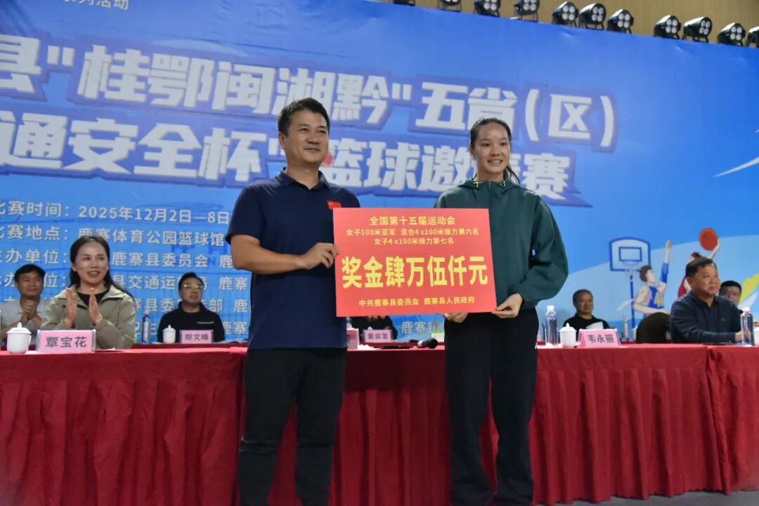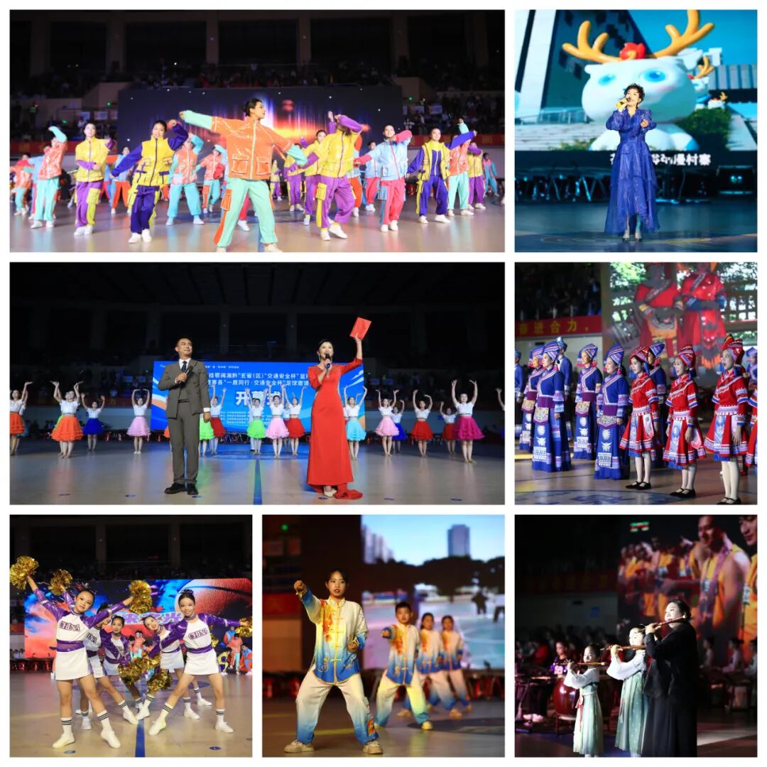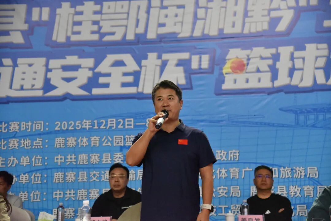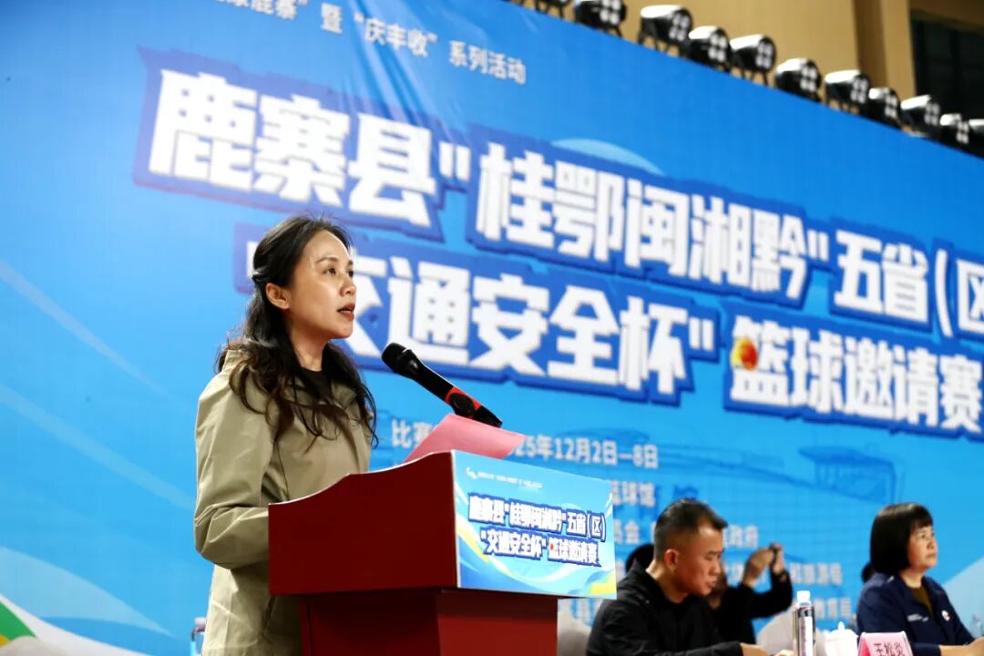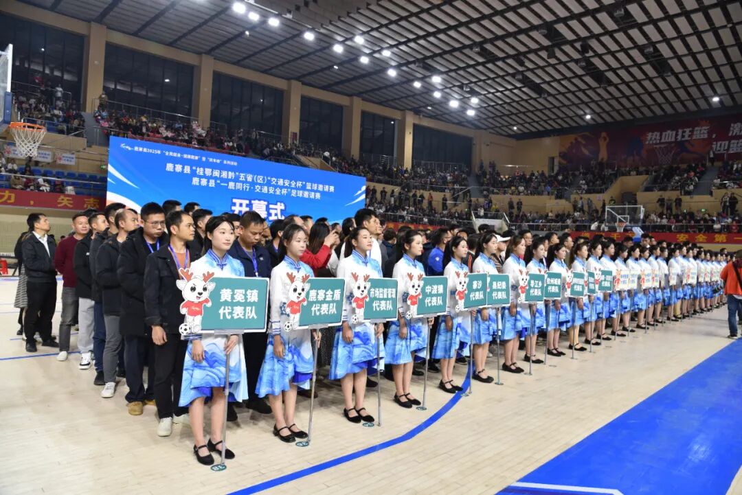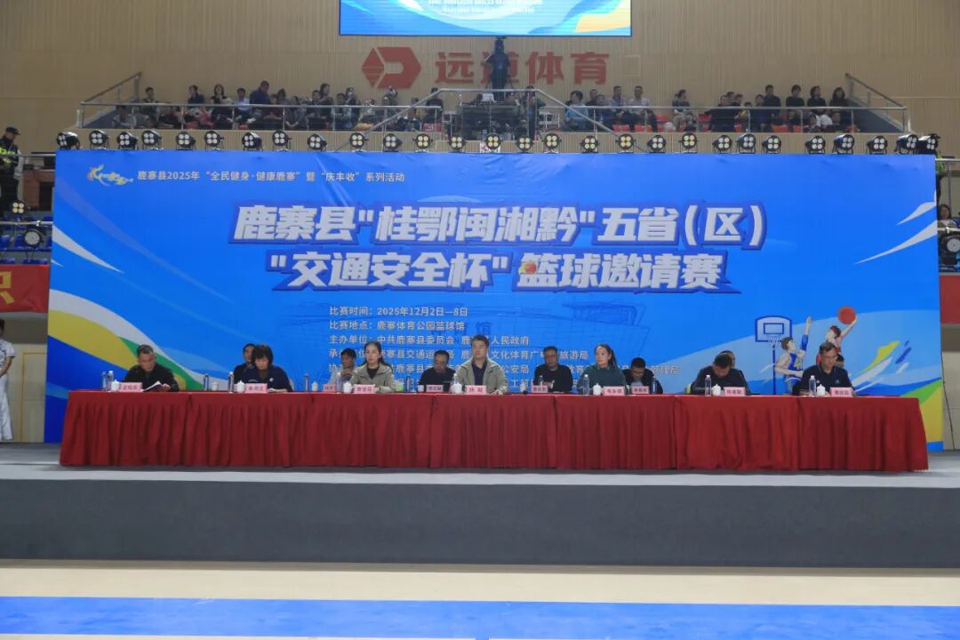 12月2日“全国交通安全日”当晚,鹿寨体育公园篮球馆内灯火璀璨、人声鼎沸,鹿寨县2025年“全民健身·健康鹿寨”暨“庆丰收”系列活动之鹿寨县“桂鄂闽湘黔”五省(区)“交通安全杯”篮球邀请赛、鹿寨县“一鹿同行·交通安全杯”足球邀请赛在此盛大开幕。杨毅、覃宝花、陈需勤、朱燕文等县四家班子领导与来自五省(区)的运动健儿、嘉宾及市民代表齐聚一堂,共同见证这场文体融合、区域联动的体育盛宴。