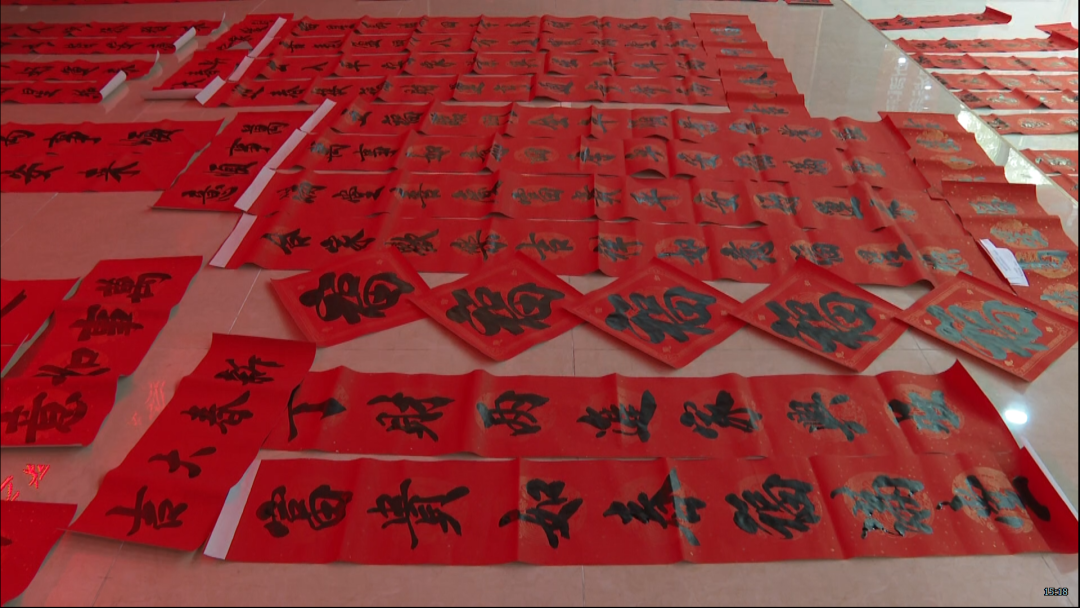 活动现场,书法家们精神饱满、神情专注,在一字摆开的书案前挥毫泼墨,一撇一捺间尽显神韵,不一会儿,一副副精致火红、对仗工整的春联,一张张喜庆祥和、气韵生动的“福”字新鲜出炉,铺满一地,顷刻间营造出了浓浓的年味。