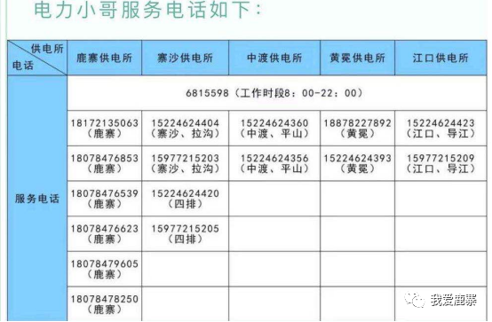 停电线路:10kV导南线(35kV导江站903线上龙口支01令克)停电时间:6月28日05时30分至6月28日17时00分停电区域:那旦、大古懂屯、龙口屯、古董村民委附近一带。停电线路:10kV拉志线(35kV拉沟站905开关至拉志01开关)停电时间:6月28日05时30分至6月28日16时00分停电区域:新志元、敬老院、老志元、拉里、大二王、勾打、移动刘家基站附近一带。(1)10kV连西线(110kV连丰站908线上顺鑫公司支01令克)(2)10kV连西线(110kV连丰站908线上高棉支05开关)(3)10kV连西线(110kV连丰站908线上高棉支05开关2刀闸)停电时间:6月29日05时00分至6月29日20时00分停电区域:顺鑫公司、景顺公司、思贤抽水、思贤、桐木、屯莲移动、联通思贤、岭背、岭背抽水、二兴、俄州村民委、对亭林场、大汾抽水、大汾、塘头附近一带。停电线路:10kV黄洛线(110kV黄冕站冕911线上黄洛05开关))停电时间:6月29日07时00分至6月29日17时00分停电区域:大步洲、里定、洛清江森林公园、洛清江分场附近一带。(1)10kV十里亭线(220kV城关站913线上文轩影城旁开闭所鹿宝进线901开关)(2)10kV十里亭线(220kV城关站913线上消防队旁开闭所鹿宝进线901开关) (3)10kV十里亭线(220kV城关站913线上经济适用房支01刀闸)停电时间:6月30日07时00分至6月30日19时00分停电区域:建东小苑、经济房小区、文轩大厦附近一带。停电线路:10kV拉志线(35kV拉沟站905线上九歪2支01令克)停电时间:6月30日06时00分至6月30日20时00分以上工作遇雨改期,如需供电服务帮助,欢迎拨打片区经理服务电话,我们将竭诚为您服务!片区经理服务电话如下: