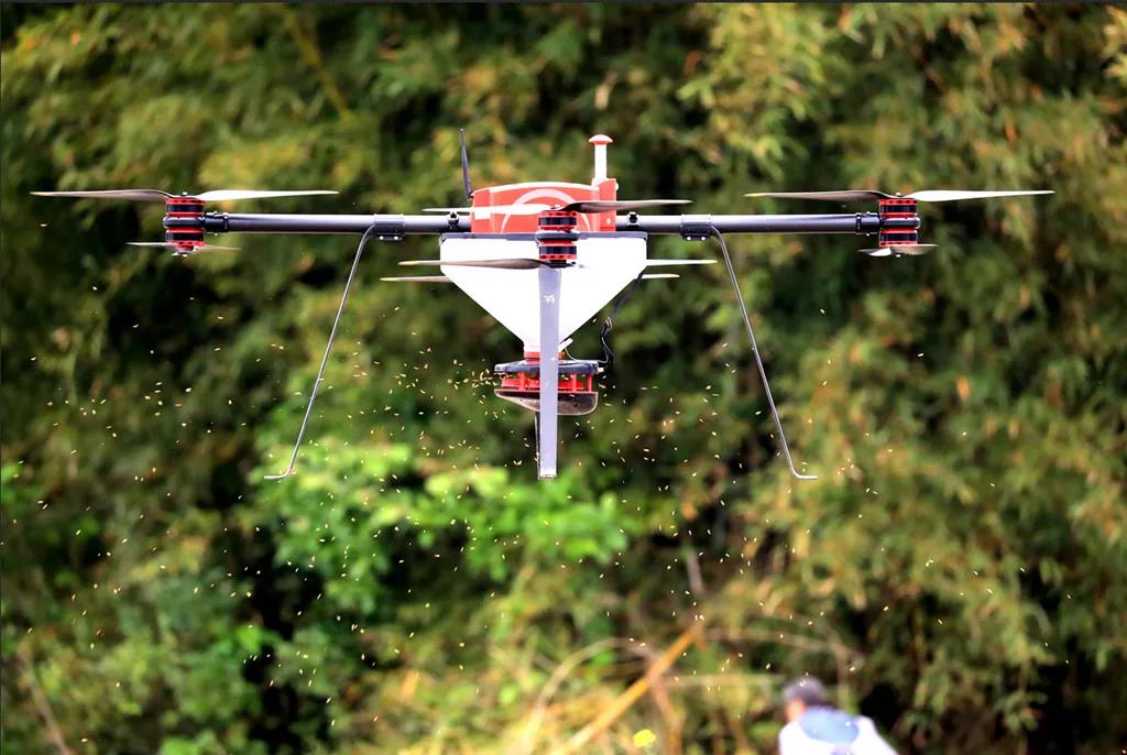 作为农业机械化领域的“特种兵”,无人机直播水稻一天可轻松完成200至300亩水田播种,除了省工省力、节约大量劳力成本外,它还具有记忆功能,播撒的种子数量和行距等都精准可控,农业生产效率得到大幅度提高。