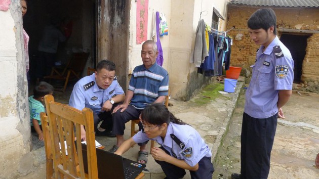 图为四排派出所户籍民警下村给行动不便的耄耋老人办理身份证。