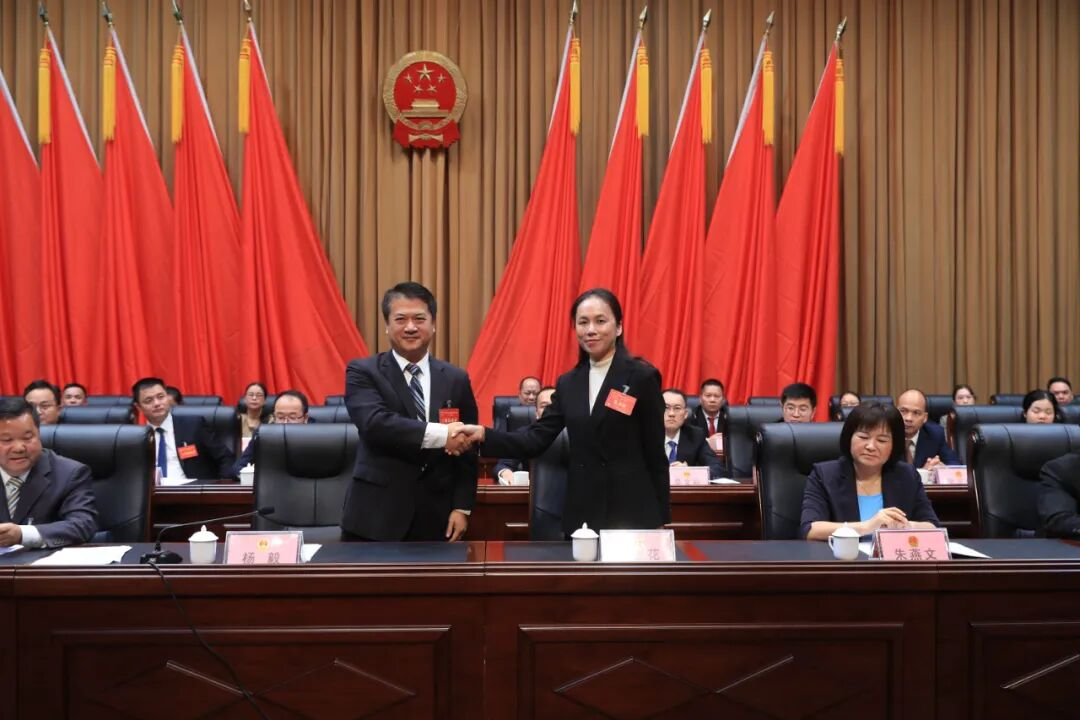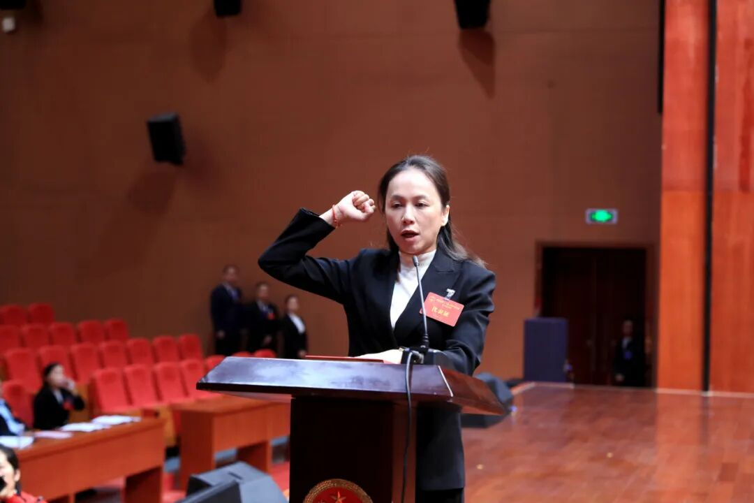 随后,新当选的县人民政府县长覃宝花;新当选的县第十八届人民代表大会常务委员会委员李洁、吴冬宁、陶鹏及县第十八届人民代表大会财政经济委员会主任委员李俊勇分批向宪法宣誓。