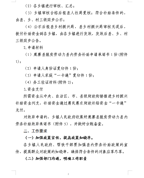 关于做好脱贫劳动力县内劳务补助工作的通知