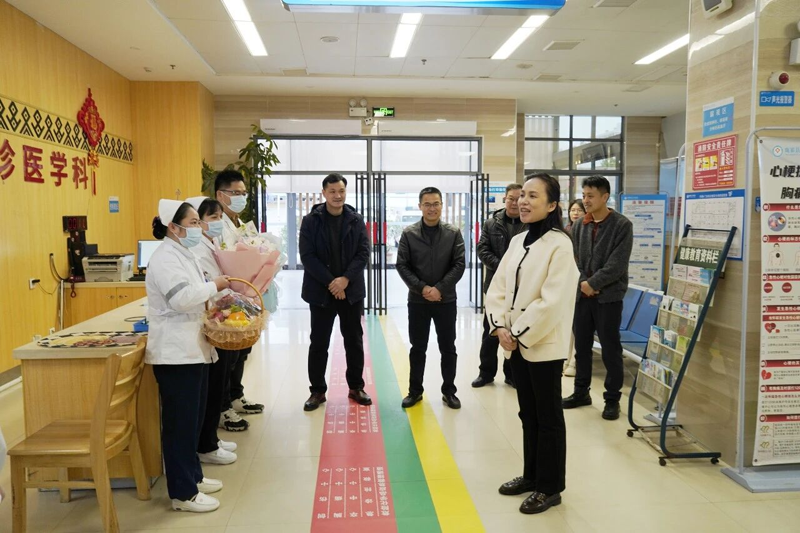 在县人民医院,覃宝花亲切看望了节日期间坚守医疗救治一线的医护工作者,详细了解医护人员在岗值守及全县医疗服务运行等情况,对医护工作者们舍小家、为大家,坚守医疗一线、践行医者使命的责任担当致以衷心感谢。