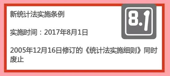 2017年6月19日李克强总理签署国务院令,公布了《中华人民共和国统计法实施条例》(以下简称统计法实施条例),该条例已于2017年8月1日起正式施行。