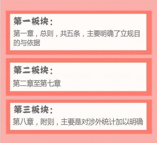《中华人民共和国统计法实施条例》一共为八章,55条,分为三大板块: