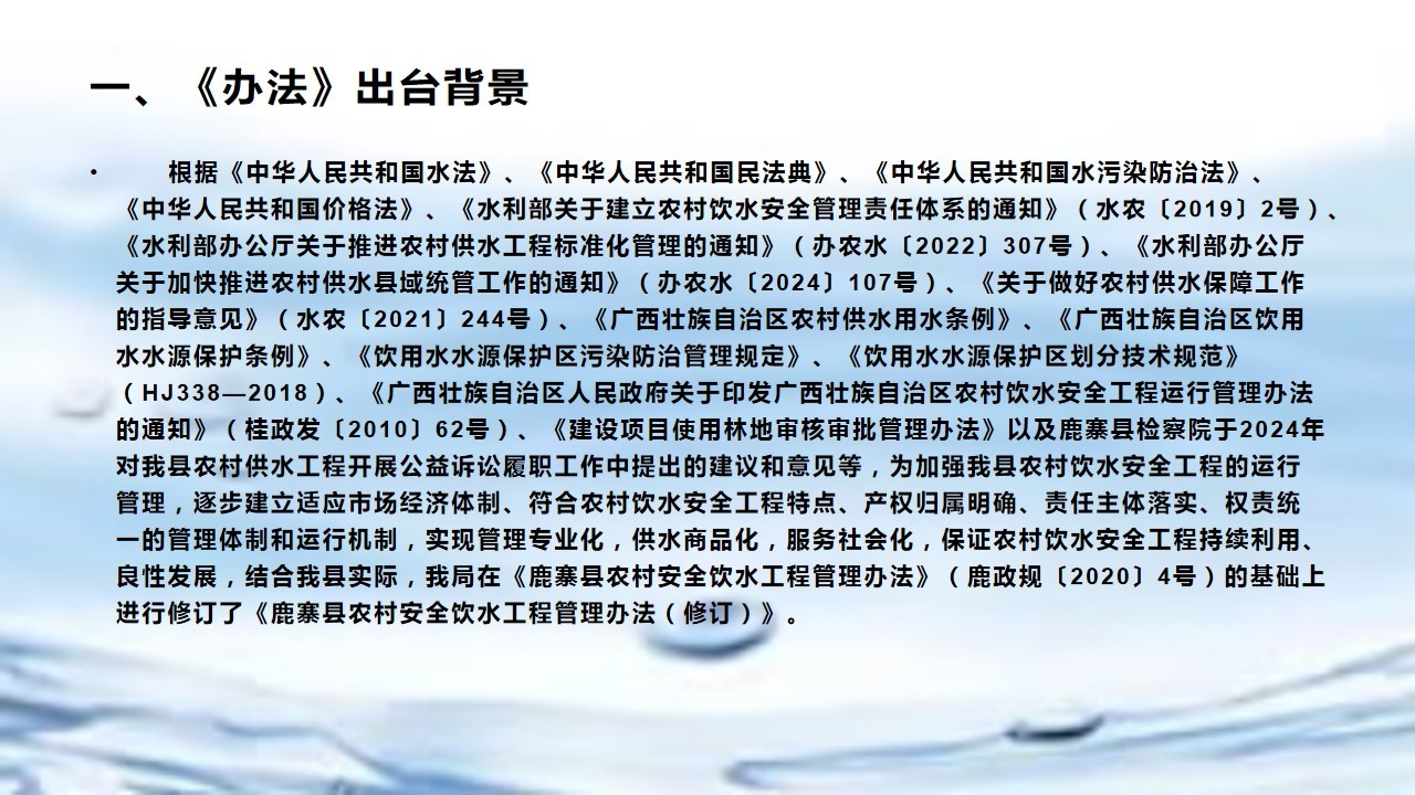 【图解】《鹿寨县农村饮水安全工程运行管理办法(修订)》的政策解读