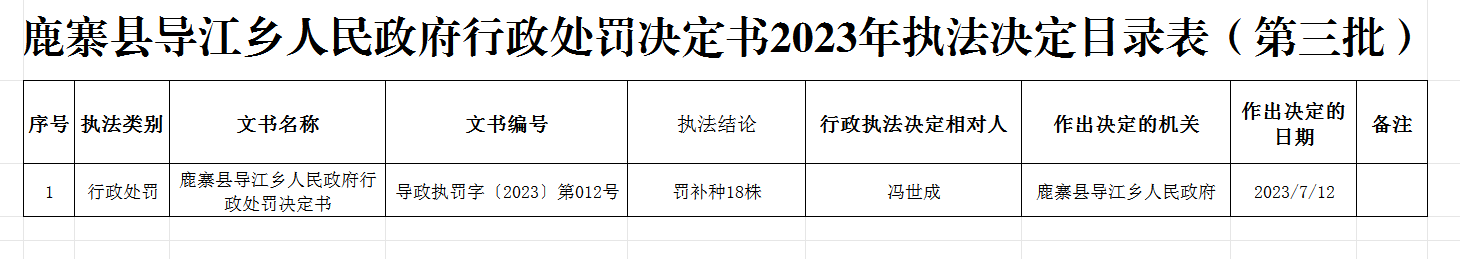 鹿寨县导江乡人民政府行政处罚决定书2023年执法决定目录表(第三批)