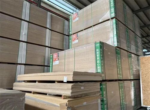 一家美公司的“飞鹿”板材整齐堆放。关雅雯 摄